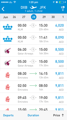 See all your recent searches and simply tap them to repeat a search at any time. The Musafir Mobile app makes flight search results appear to 2x faster than an average mobile web travel search.